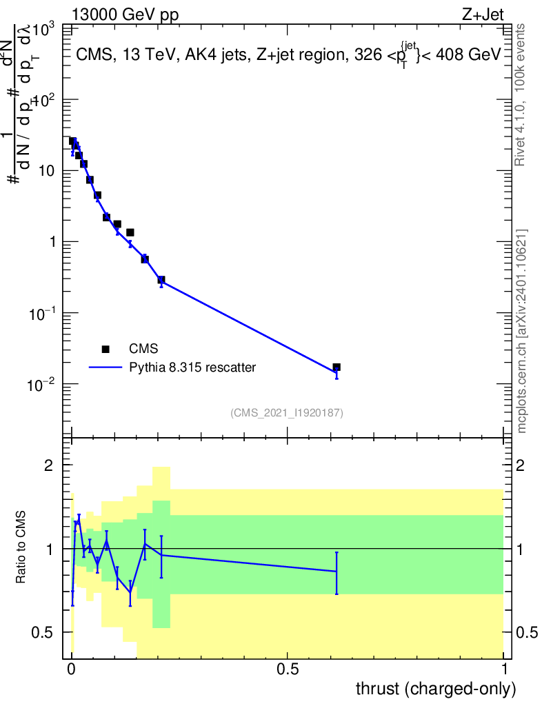 Lines: data, pythia8 8.315 rescatter |