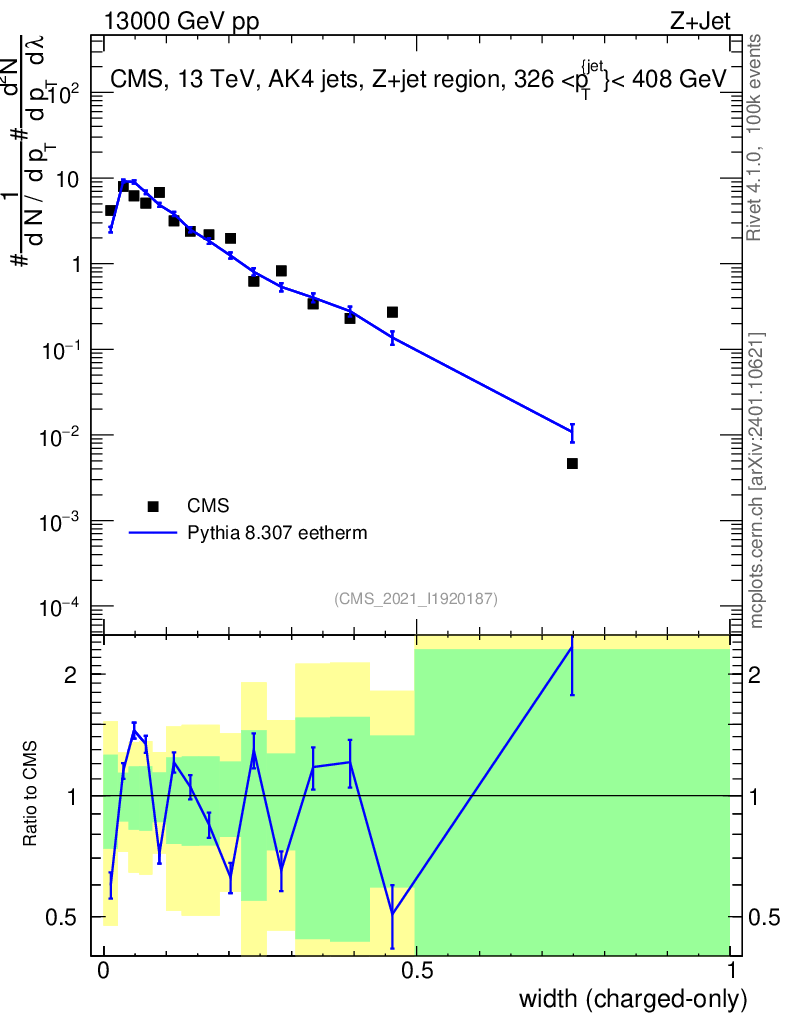Lines: data, pythia8 8.307 eetherm |