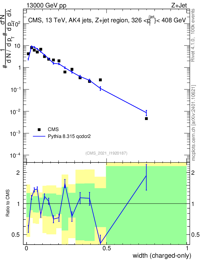 Lines: data, pythia8 8.315 qcdcr2 |