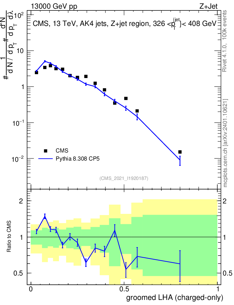 Lines: data, pythia8 8.308 CP5 |