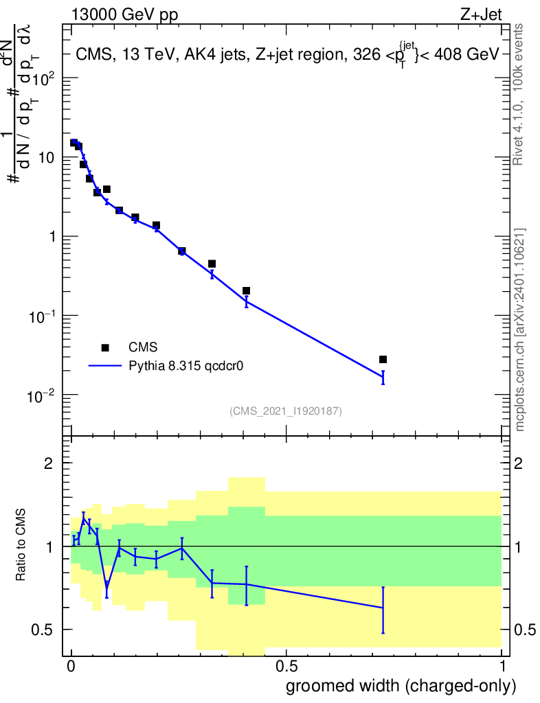 Lines: data, pythia8 8.315 qcdcr0 |