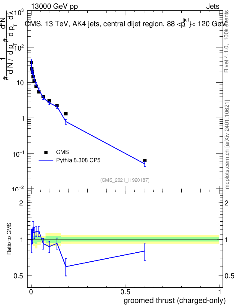 Lines: data, pythia8 8.308 CP5 |