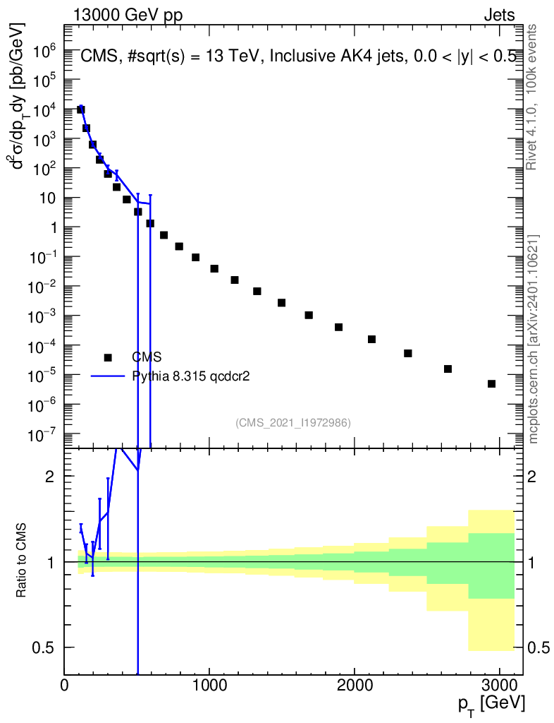 Lines: data, pythia8 8.315 qcdcr2 |