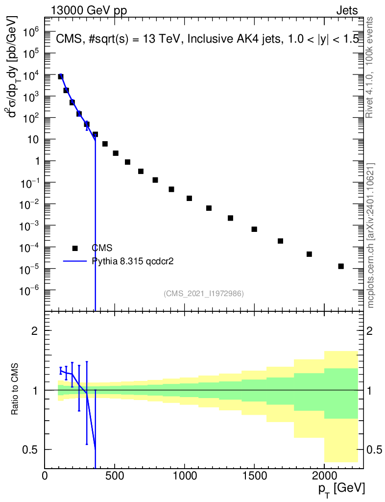 Lines: data, pythia8 8.315 qcdcr2 |