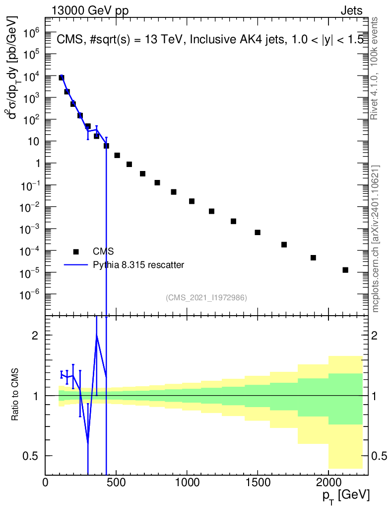 Lines: data, pythia8 8.315 rescatter |
