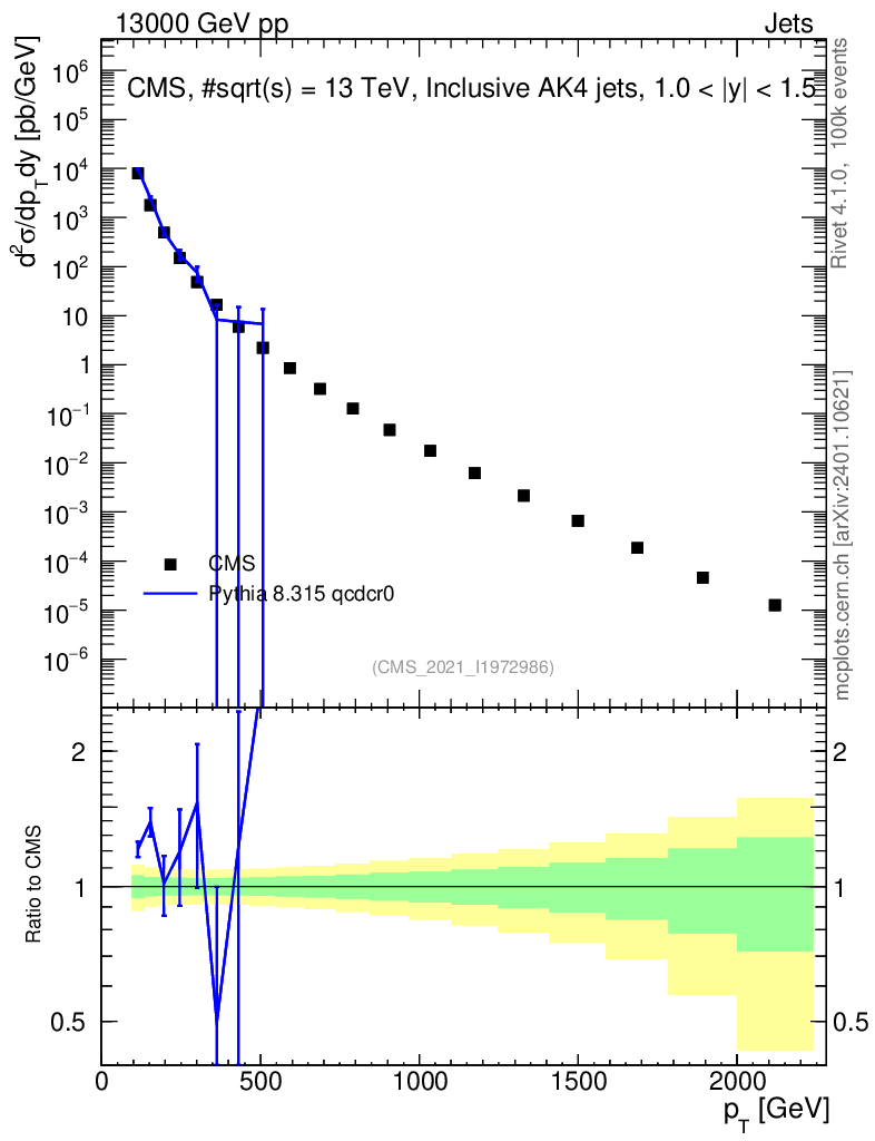 Lines: data, pythia8 8.315 qcdcr0 |