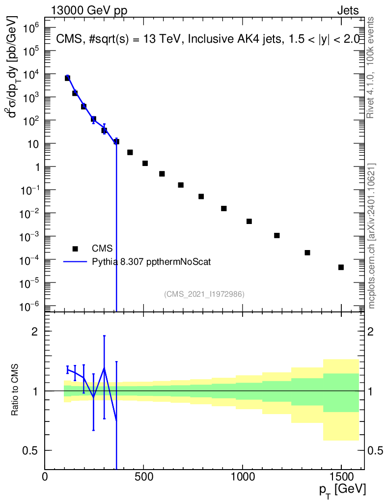 Lines: data, pythia8 8.307 ppthermNoScat |
