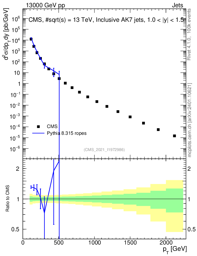 Lines: data, pythia8 8.315 ropes |
