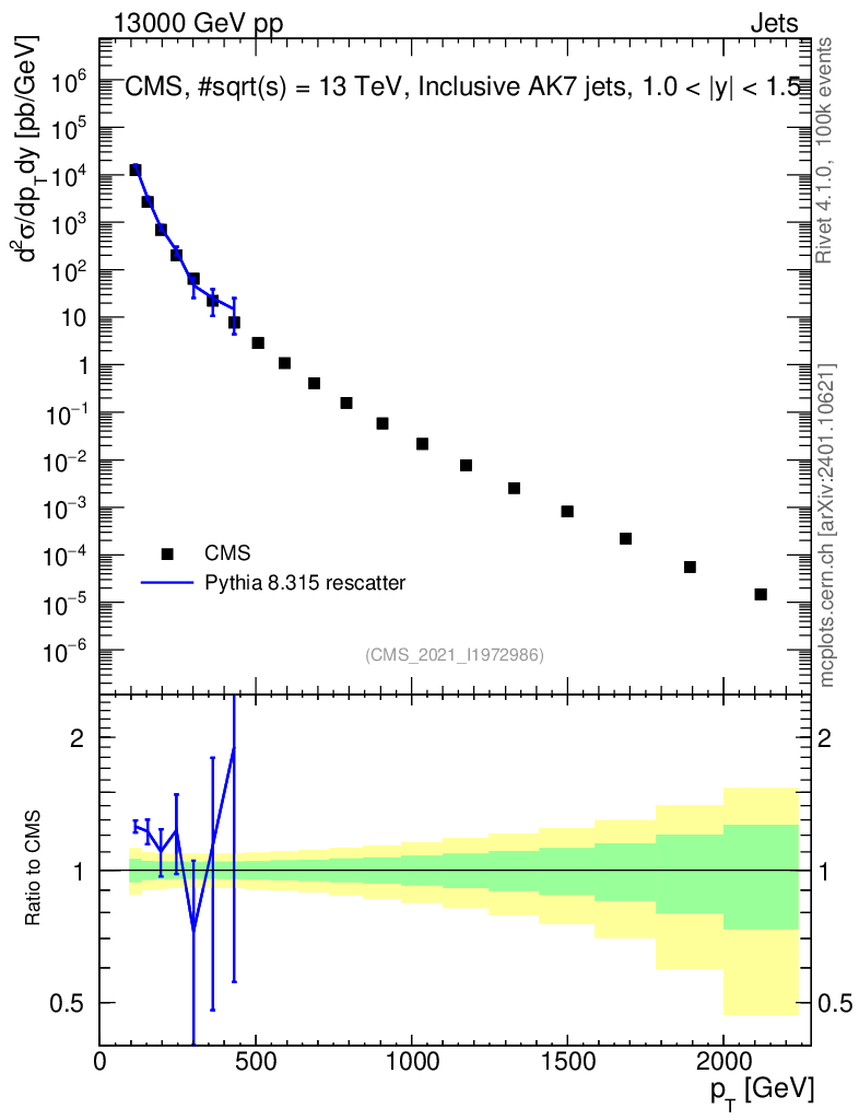 Lines: data, pythia8 8.315 rescatter |