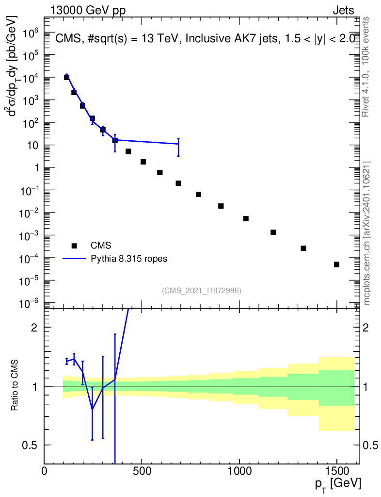 Lines: data, pythia8 8.315 ropes |