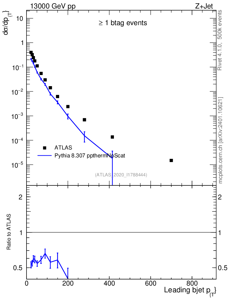 Lines: data, pythia8 8.307 ppthermNoScat |