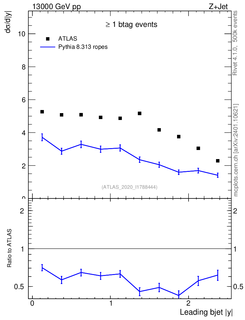 Lines: data, pythia8 8.313 ropes |