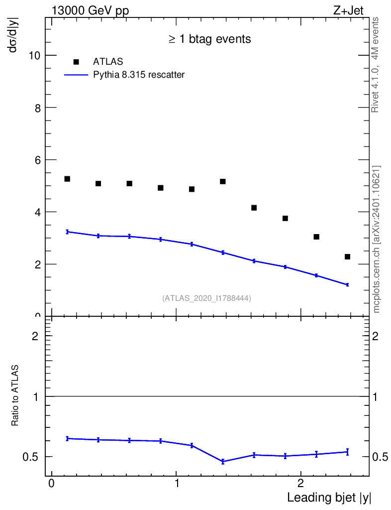 Lines: data, pythia8 8.315 rescatter |