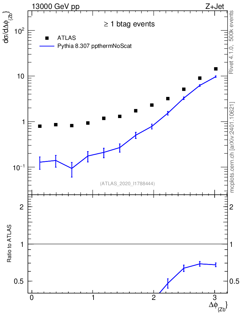 Lines: data, pythia8 8.307 ppthermNoScat |