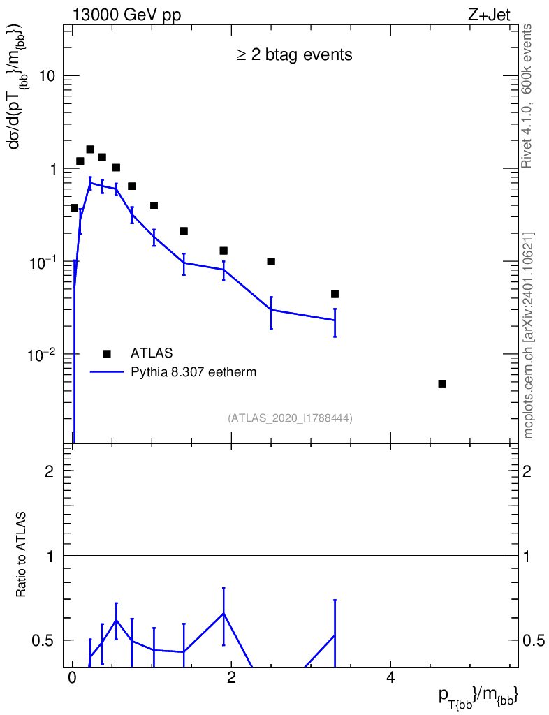 Lines: data, pythia8 8.307 eetherm |