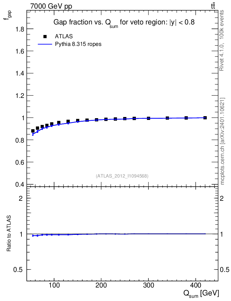 Lines: data, pythia8 8.315 ropes |