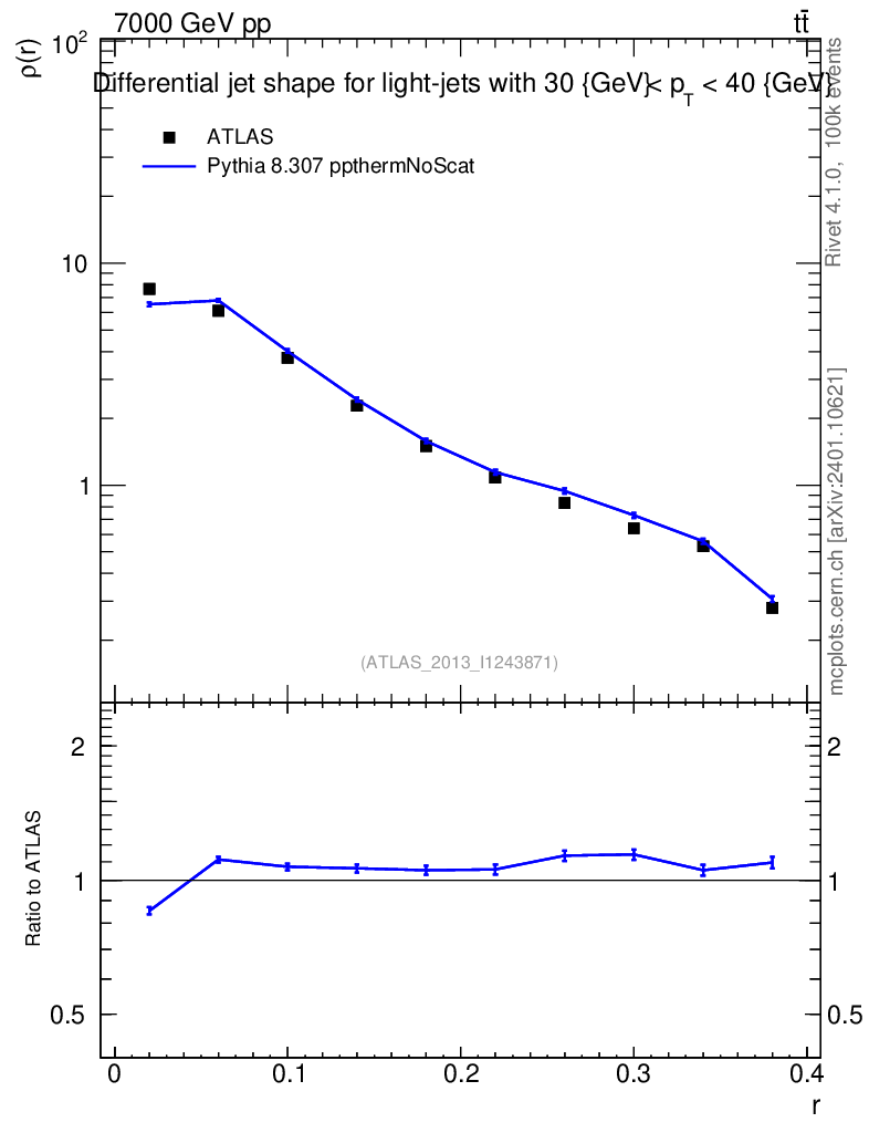 Lines: data, pythia8 8.307 ppthermNoScat |