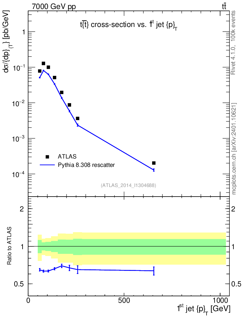 Lines: data, pythia8 8.308 rescatter |