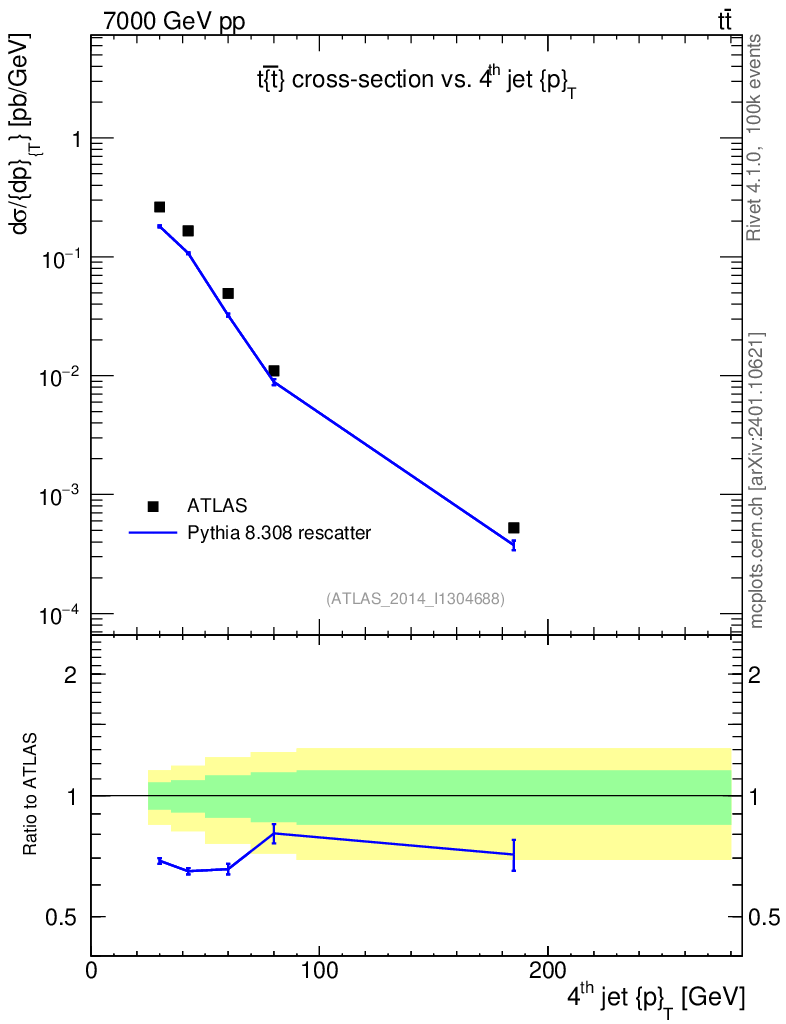 Lines: data, pythia8 8.308 rescatter |