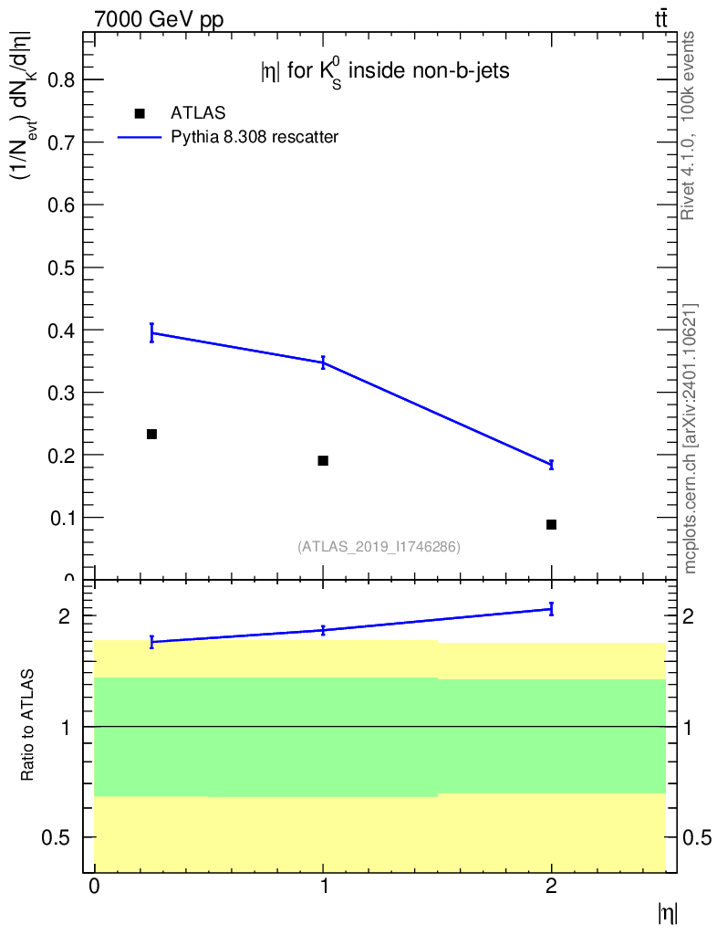 Lines: data, pythia8 8.308 rescatter |