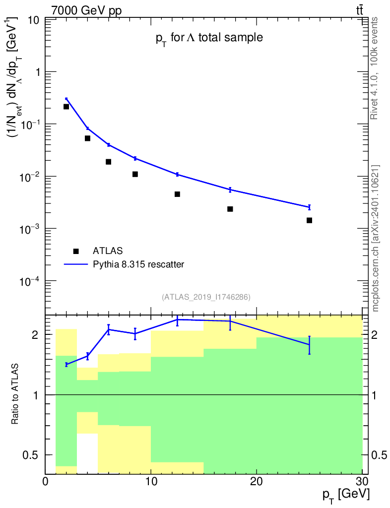 Lines: data, pythia8 8.315 rescatter |