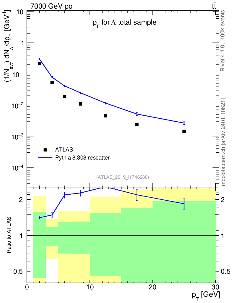 Lines: data, pythia8 8.308 rescatter |
