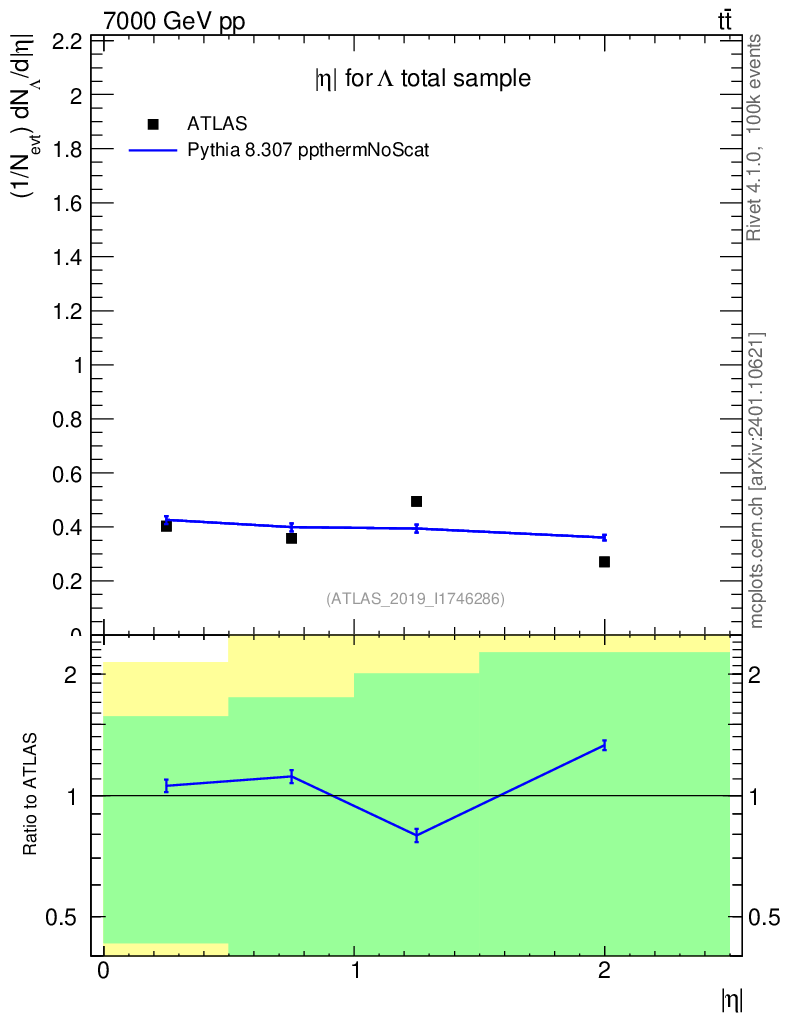 Lines: data, pythia8 8.307 ppthermNoScat |