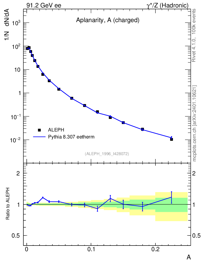 Lines: data, pythia8 8.307 eetherm |