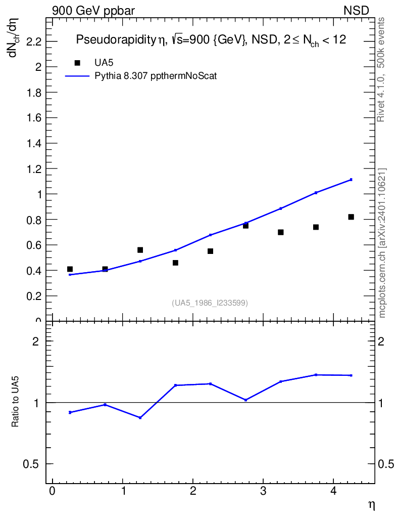 Lines: data, pythia8 8.307 ppthermNoScat |