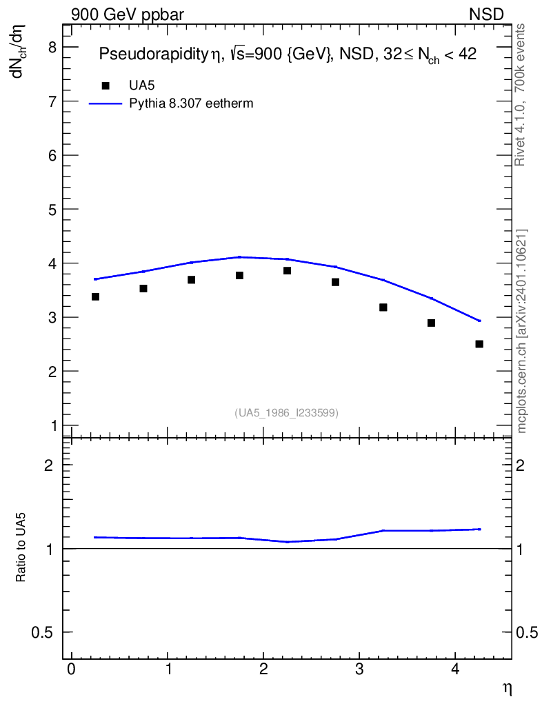 Lines: data, pythia8 8.307 eetherm |