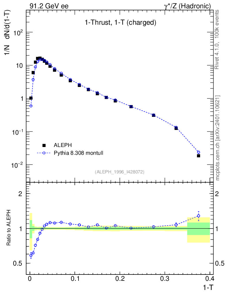Lines: data, pythia8 8.308 montull | compare with other tunes