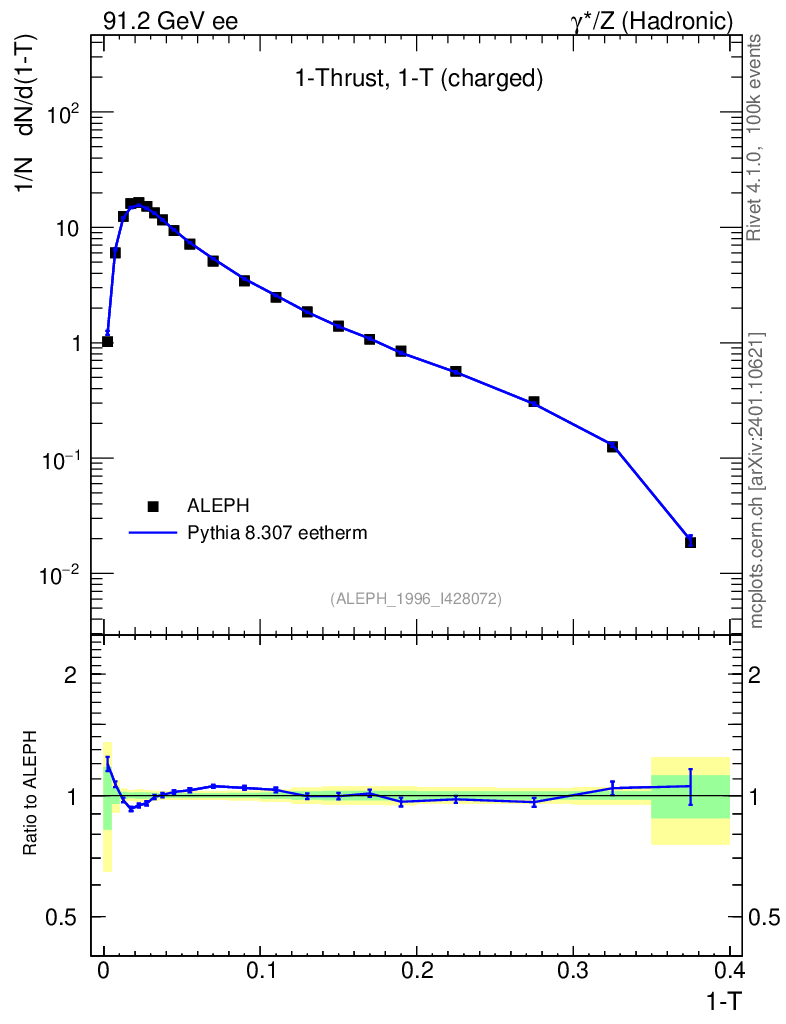 Lines: data, pythia8 8.307 eetherm |