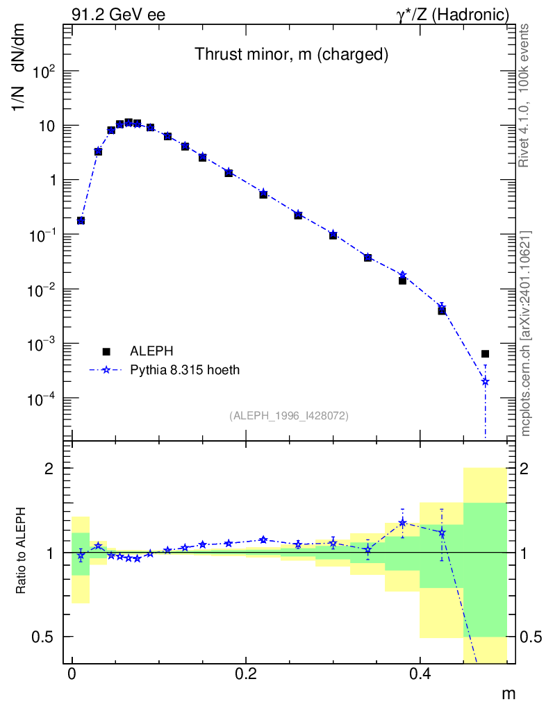 Lines: data, pythia8 8.315 hoeth |