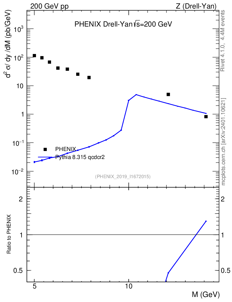 Lines: data, pythia8 8.315 qcdcr2 |