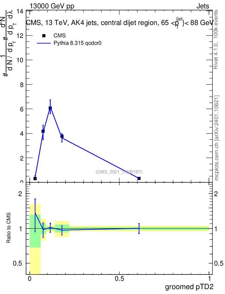 Lines: data, pythia8 8.315 qcdcr0 |