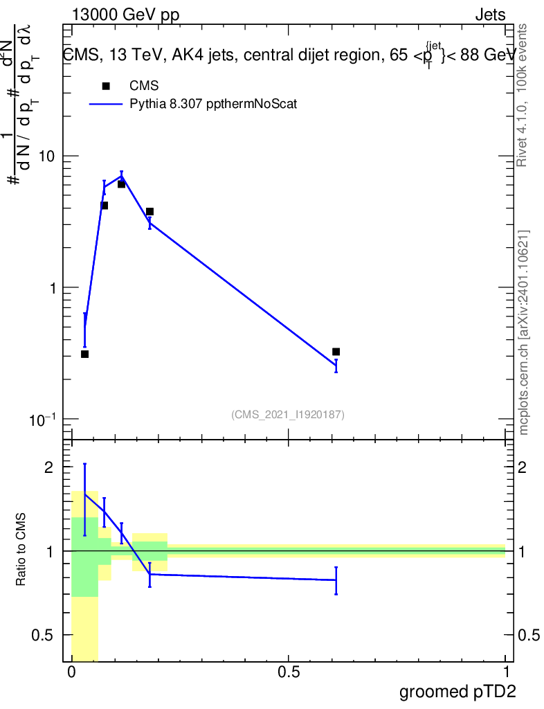 Lines: data, pythia8 8.307 ppthermNoScat |