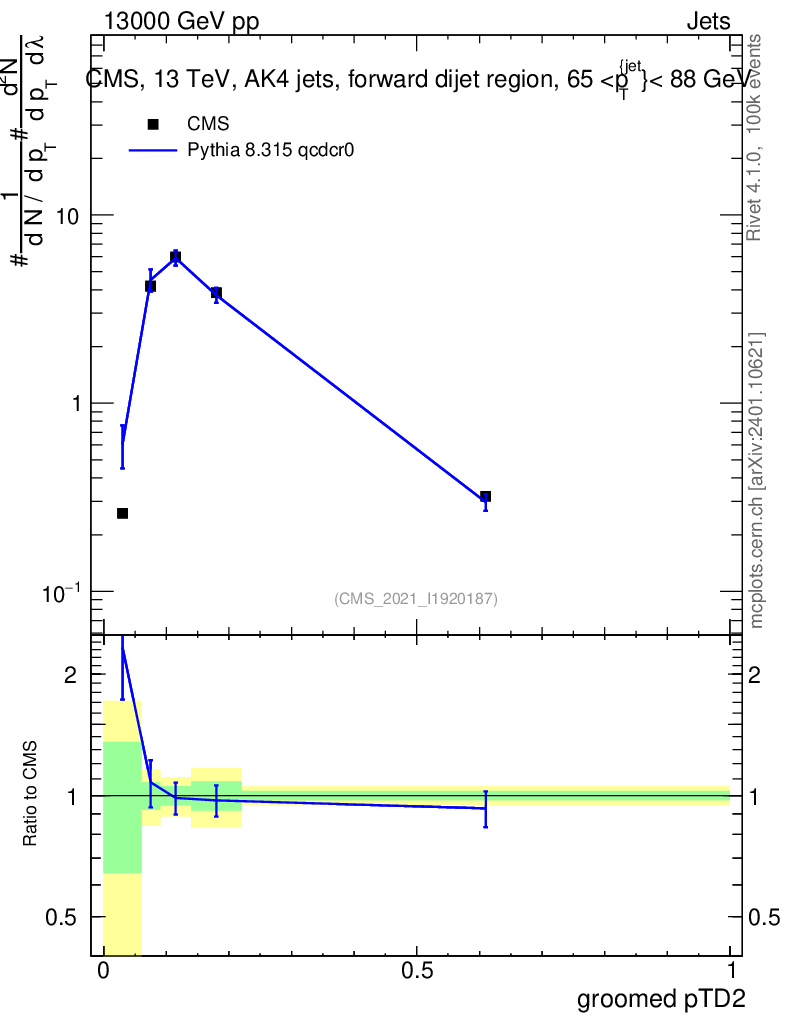 Lines: data, pythia8 8.315 qcdcr0 |