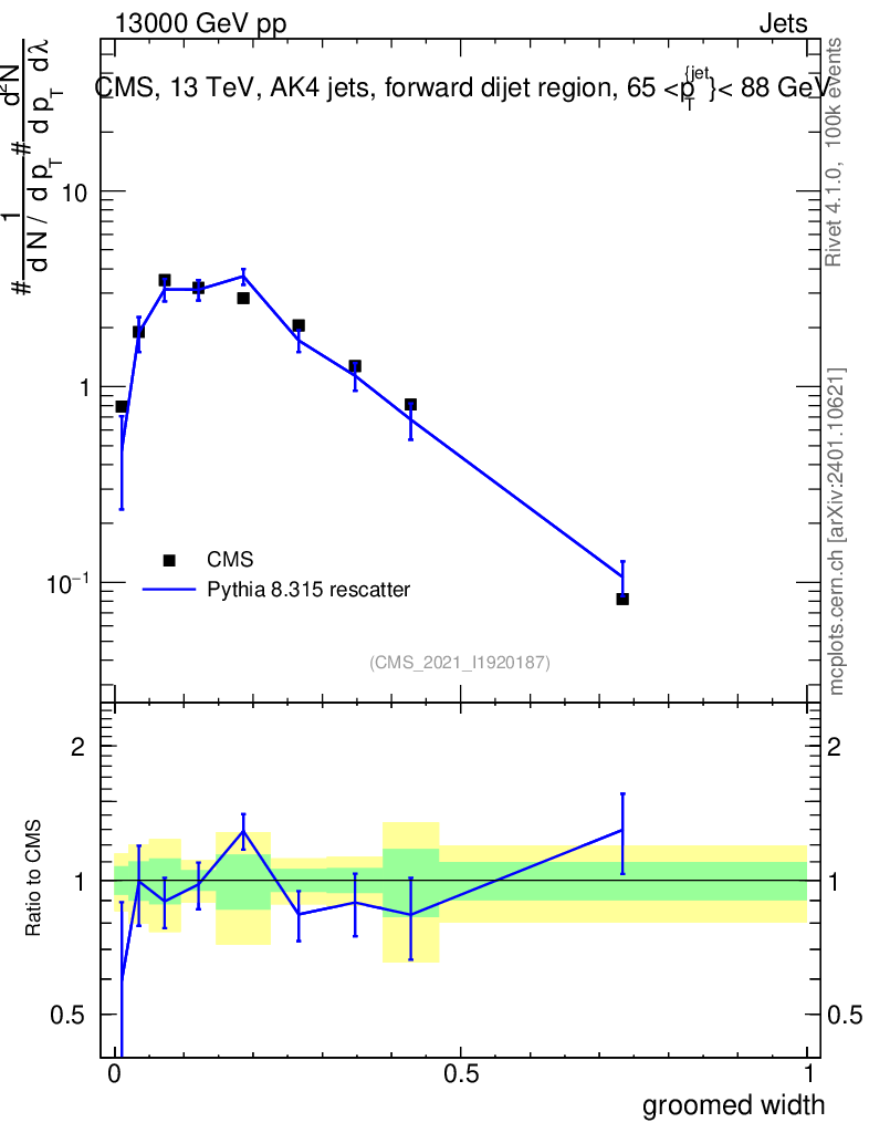 Lines: data, pythia8 8.315 rescatter |