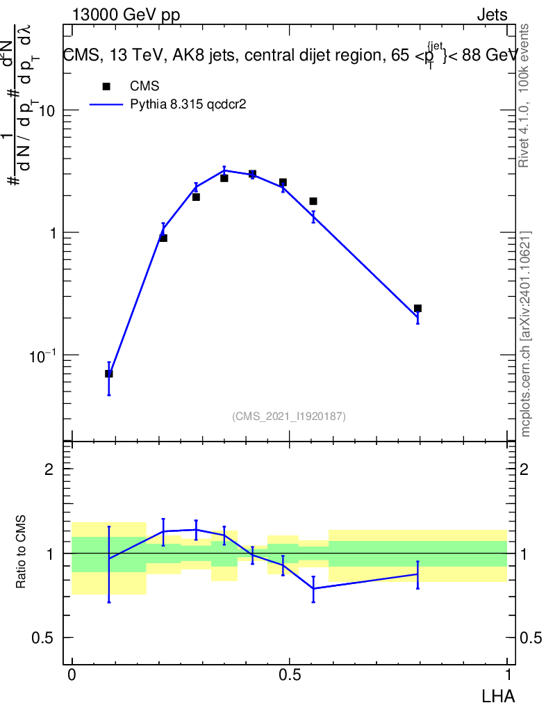 Lines: data, pythia8 8.315 qcdcr2 |