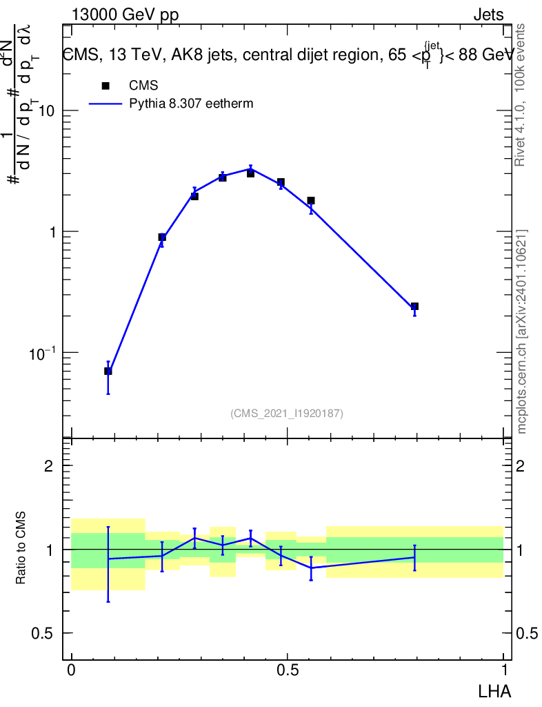 Lines: data, pythia8 8.307 eetherm |