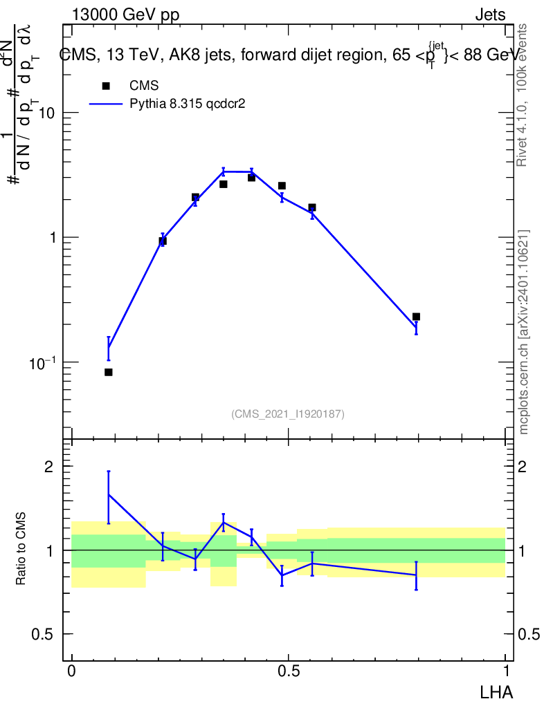 Lines: data, pythia8 8.315 qcdcr2 |