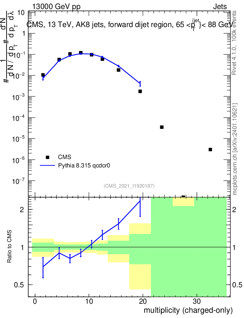 Lines: data, pythia8 8.315 qcdcr0 |