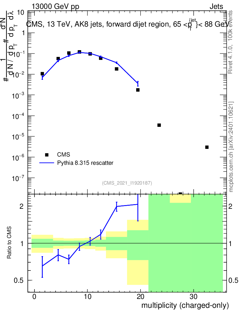 Lines: data, pythia8 8.315 rescatter |