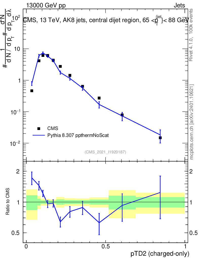 Lines: data, pythia8 8.307 ppthermNoScat |