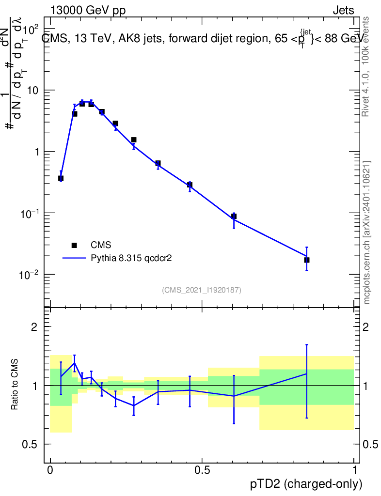 Lines: data, pythia8 8.315 qcdcr2 |