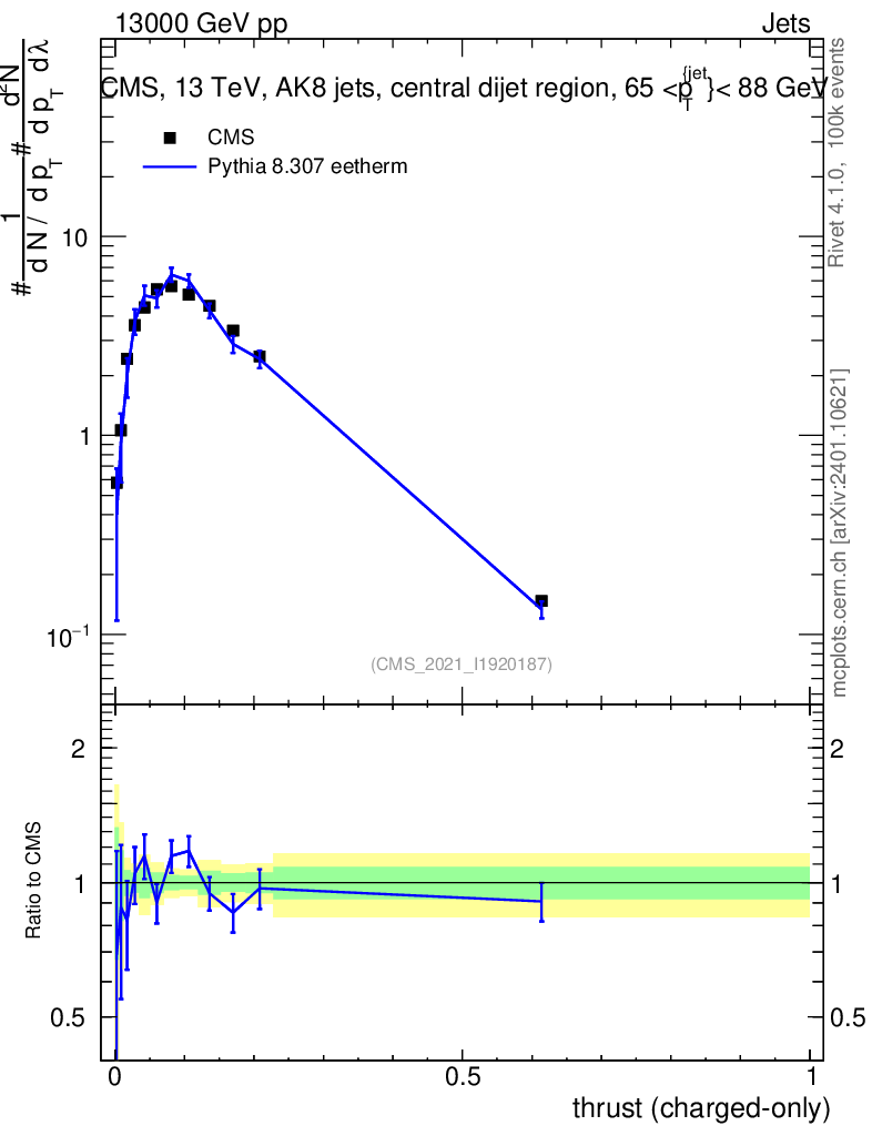 Lines: data, pythia8 8.307 eetherm |