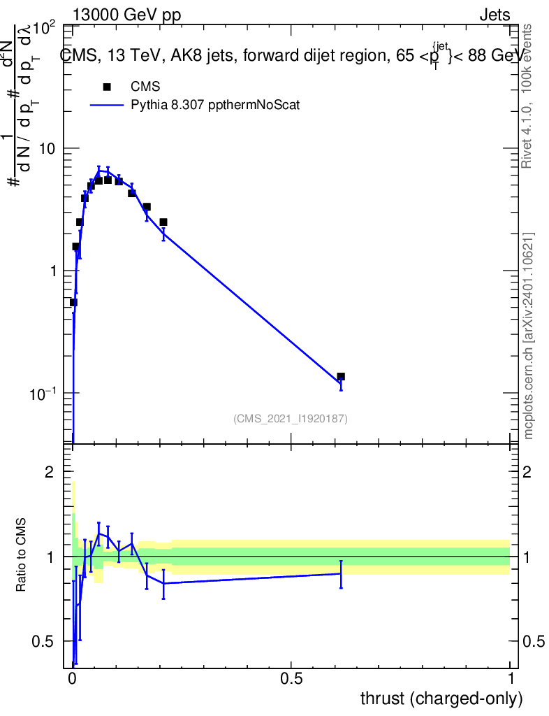 Lines: data, pythia8 8.307 ppthermNoScat |
