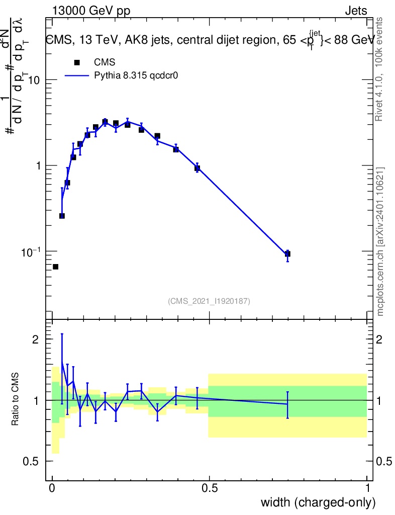 Lines: data, pythia8 8.315 qcdcr0 |