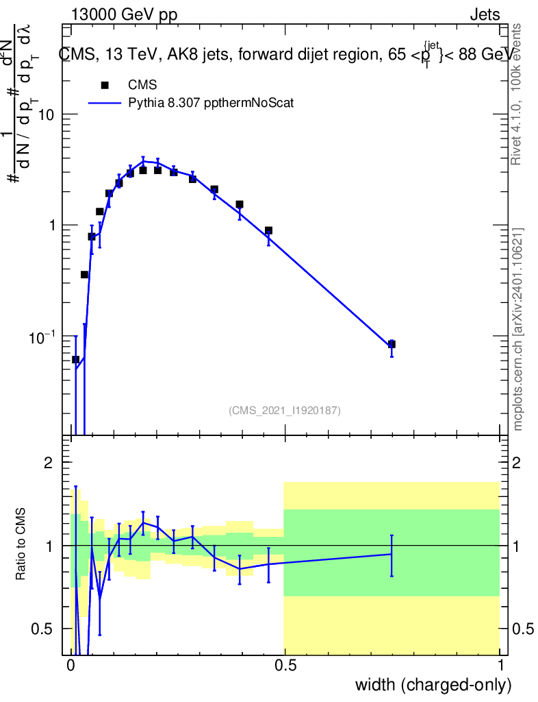 Lines: data, pythia8 8.307 ppthermNoScat |