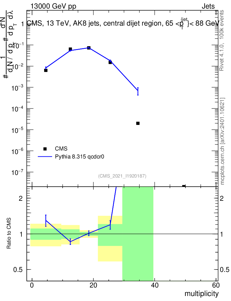 Lines: data, pythia8 8.315 qcdcr0 |